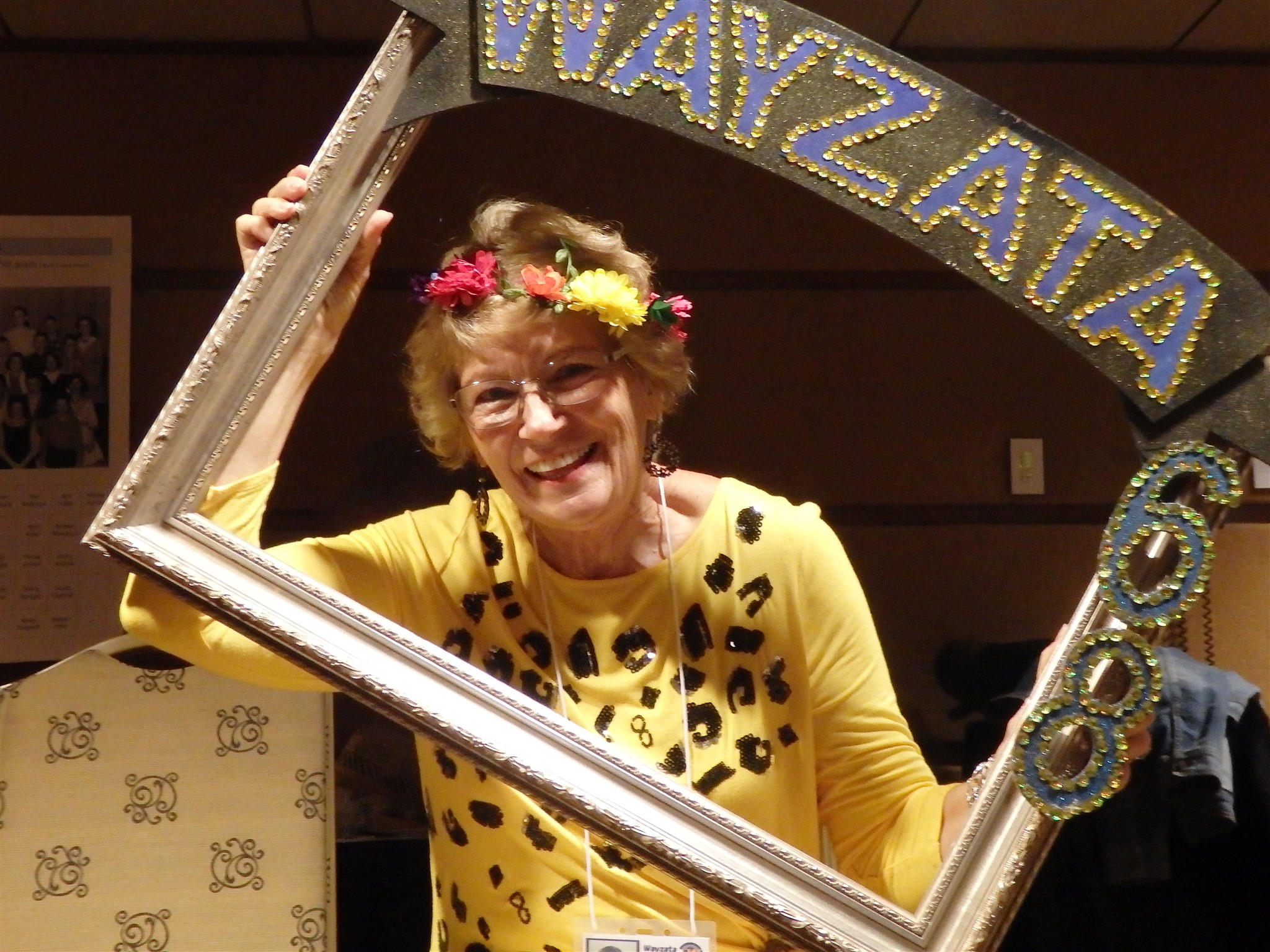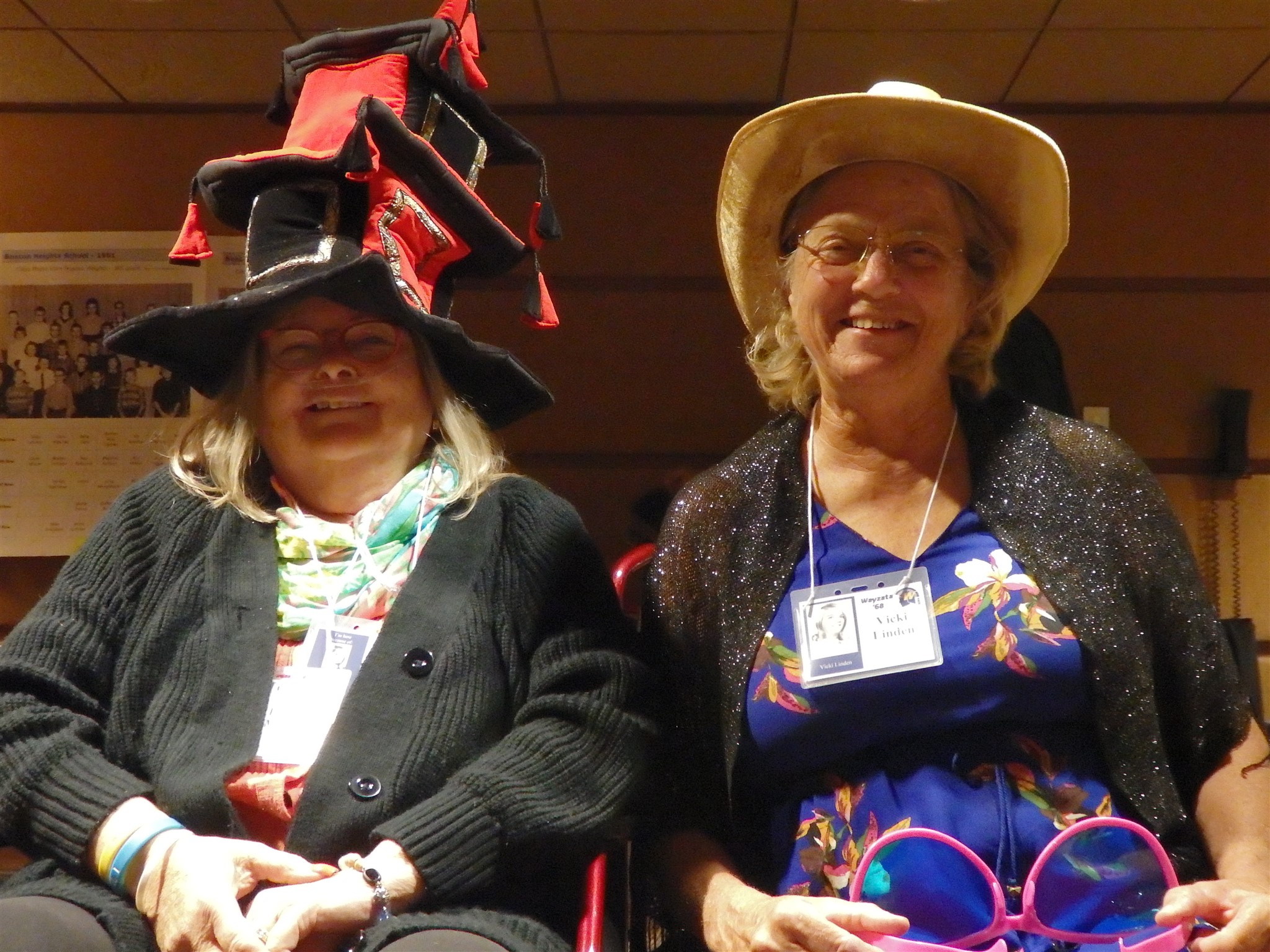 Bonnie McCannel takes a break from being treasurer to pose with Vicki Linden |
